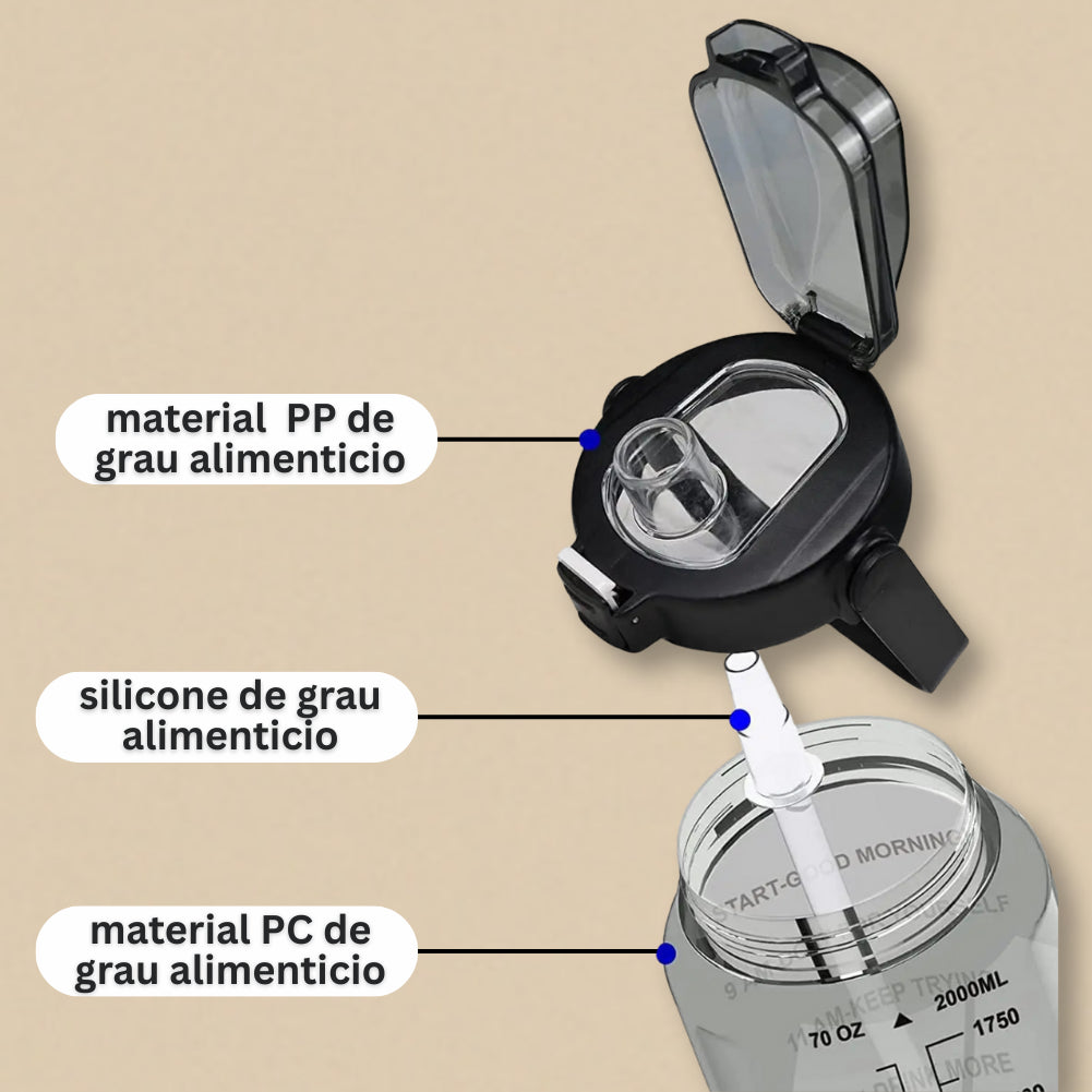 Capacidade 2L (64oz): hidratação o dia inteiro sem precisar encher várias vezes.